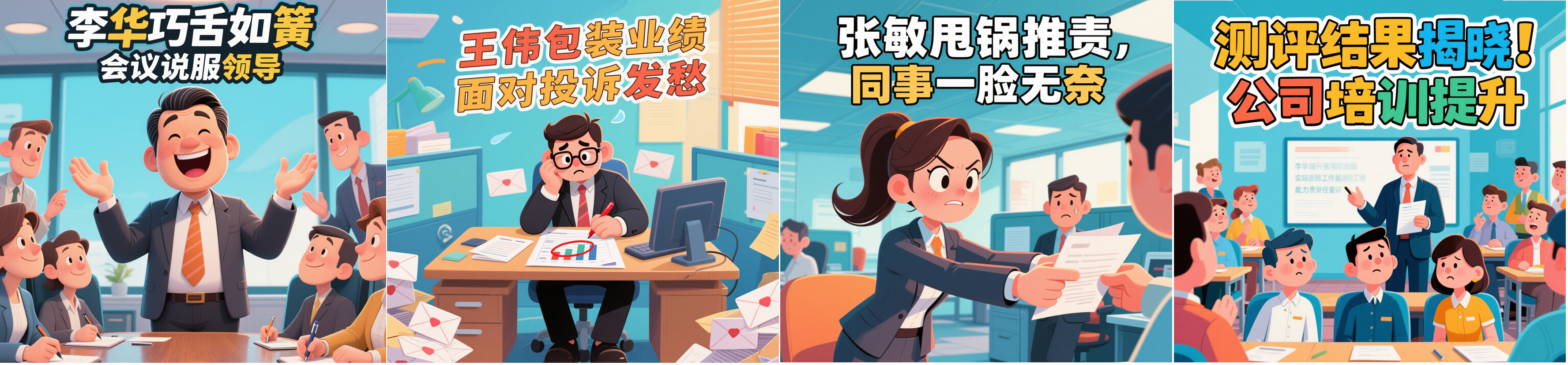 “只会说话”的李华:他口才出众,会议上总是能把复杂的问题用华丽的包装成“好主意”,让领导心服口服。然而,当真正的工作落到他的肩上,他却把责任巧妙地推给同事,自己悠然自得。表面上,他似乎获得了升职的荣耀,但他的团队却在辛苦劳作中感到无比失落。360°测评如同一面镜子,反射出团队对他的不满与失望,最终,公司决定对他进行再培训,帮助他从“说”的高手成长为“做”的能手。