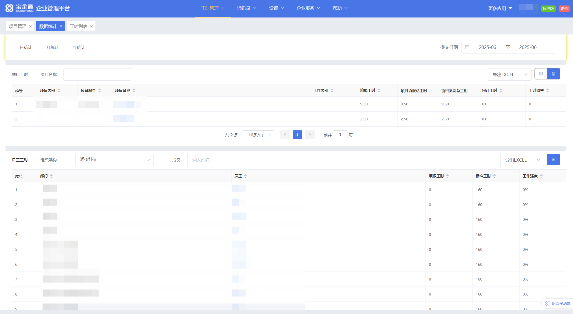 在员工工时跟踪方面,宝企通堪称 “神器”。它能够自动抓取企业考勤系统数据,与员工提交的项目工时记录进行实时比对。通过颜色预警,提示管理者排查是否存在虚报工时、任务分配不合理等问题。