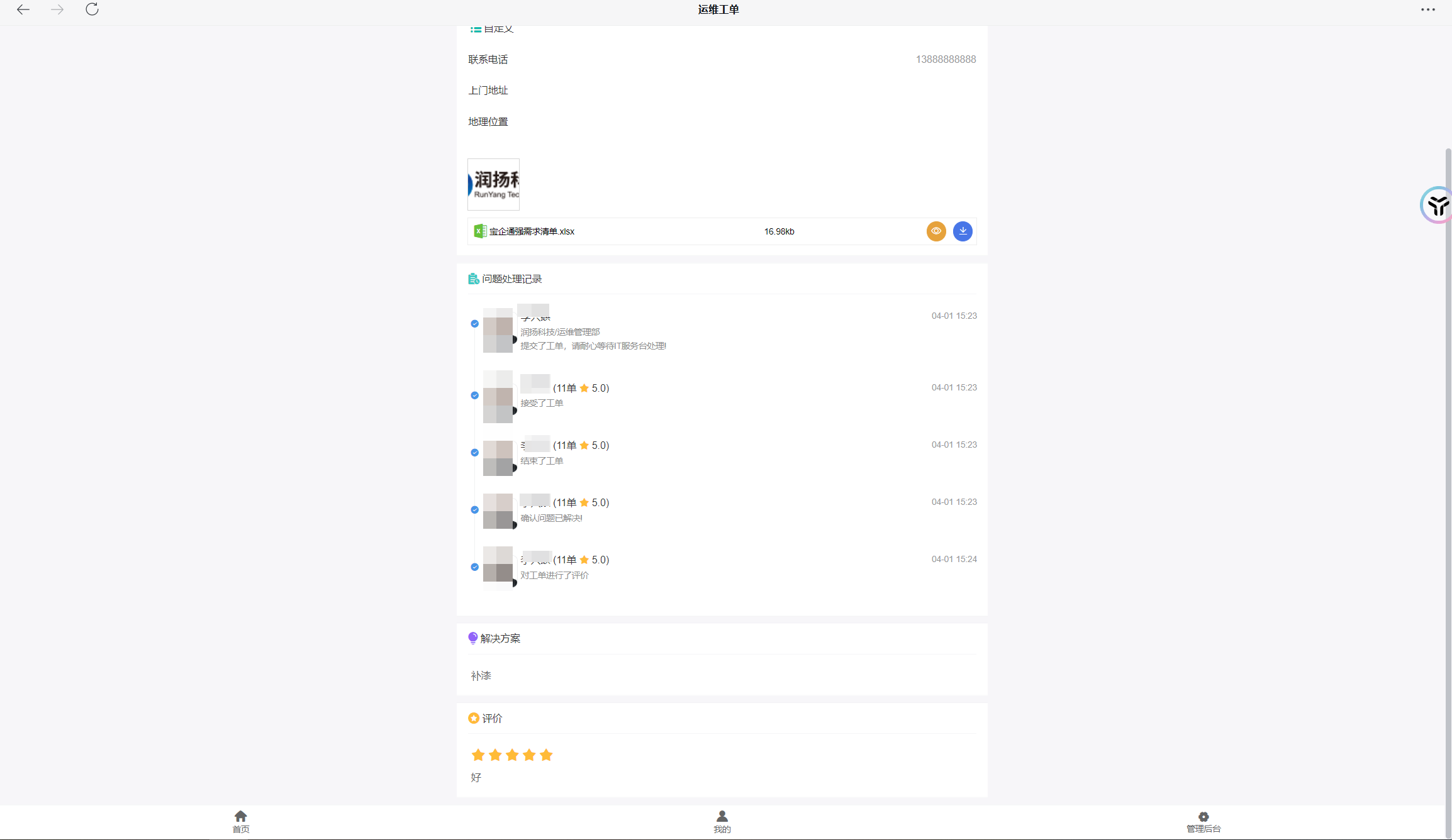 老李再也不用 “抓瞎” 了。通过宝企通后台,他能看到每个工单的全流程:从创建、接单、处理到完成,每个环节的时间、人员和日志都清晰可查。有次客户投诉空调维修慢,他直接调出工单进度截图 —— 从报修到解决仅 47 分钟,用数据狠狠 “打脸” 质疑。